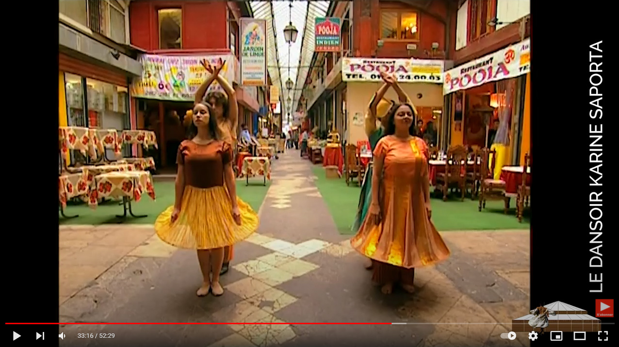 En cette période où il n’est pas donné de voyager physiquement, nous avons le plaisir de vous présenter dans le cadre de notre rubrique ‘vive le spectacle!’, un moment d’évasion vers les magies de l’Inde, transfigurées par la chorégraphe Karine Saporta. « L’Inde en vitrine » est une recréation scénarisée de « La force de l’âme », spectacle de la chorégraphe Karine Saporta, dont l’histoire se situe en Inde, à Ahmedabad et à Paris. Des danseurs indiens et espagnols se retrouvent dans un grand magasin parisien où ils dansent dans une vitrine. Ils décident d’explorer ce monde nouveau, intrigant, véritable « temple de la consommation ». Puis ils partent en «expédition» à travers Paris qu’ils découvrent pour la première fois. A chaque découverte, ils se mettent à danser. Ils se rendent dans des lieux où « l’indianité » est très présente, tels le passage Brady, le Sacré Cœur et Barbès. Parfois, au cours de leur escapade, tels des exilés, ils sont pris de nostalgie et sont transportés en Inde où ils se rêvent dansant dans des temples hindous, des mosquées et dans les rues animées et bruyantes au milieu des vaches sacrées et des marchandes de fleurs. Le film fait ainsi de façon légère et merveilleuse des allers-retours entre l’Inde et la France et ainsi, montre les relations entre la danse kathak, danse classique du nord de l’Inde, le flamenco et la danse classique occidentale.