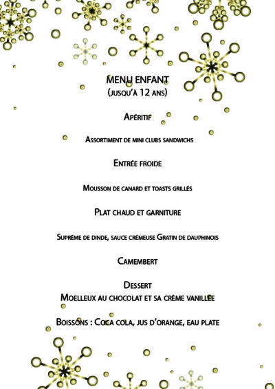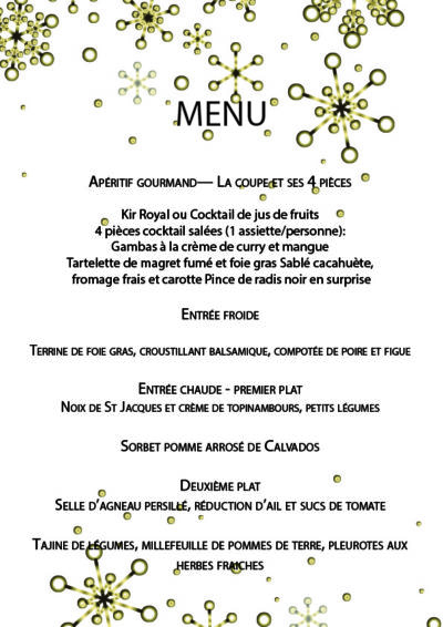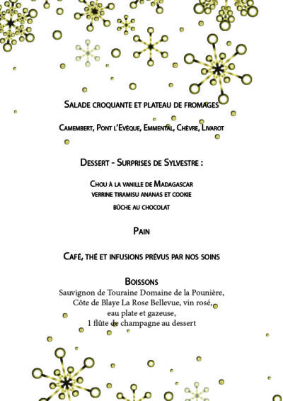 120€ – repas de Réveillon (vin inclus) + spectacle + une coupe de champagne par personne. Le 1/2 tarif s’applique pour tous les prix (enfants jusqu’à 15 ans, avec soft drinks)
